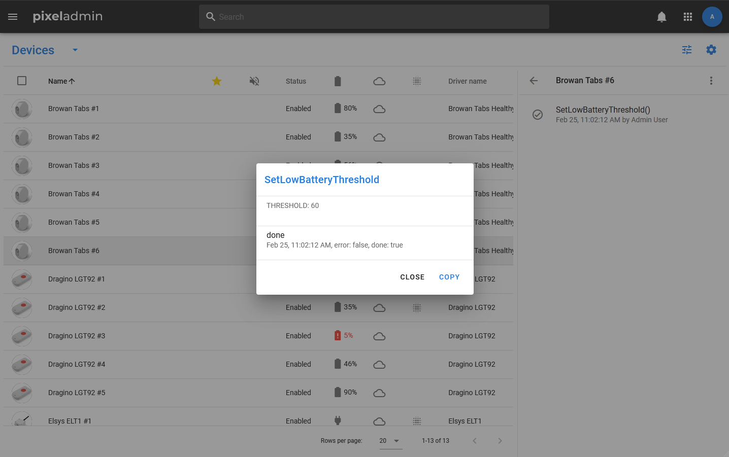 The following actions are available in the context menu of the device card: